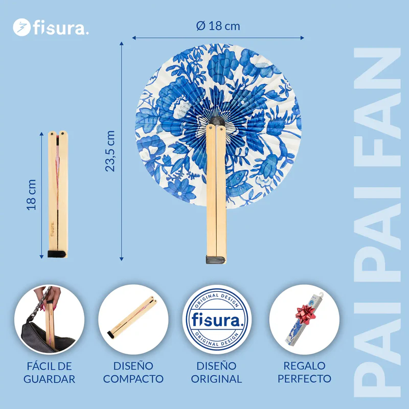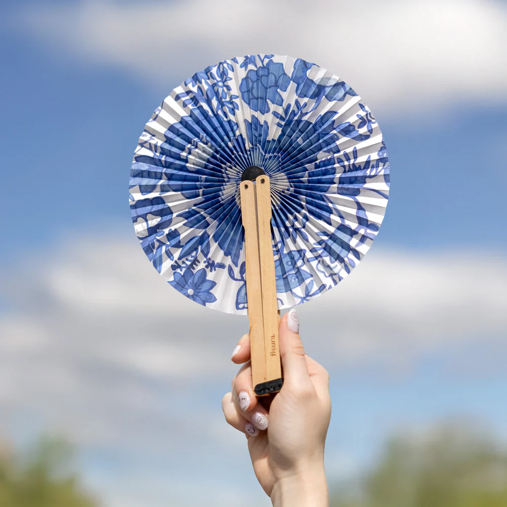 Aporta un aire vintage y sofisticado a tus looks de verano con este abanico de flores inspirado en estampados del siglo XIX. Su diseño elegante te transportará a otra época mientras te refrescas con estilo en los días más calurosos. Fabricado con papel y madera procedente de bosques gestionados de forma sostenible, es la opción eco-friendly ideal para combinar moda y compromiso con el medio ambiente.
