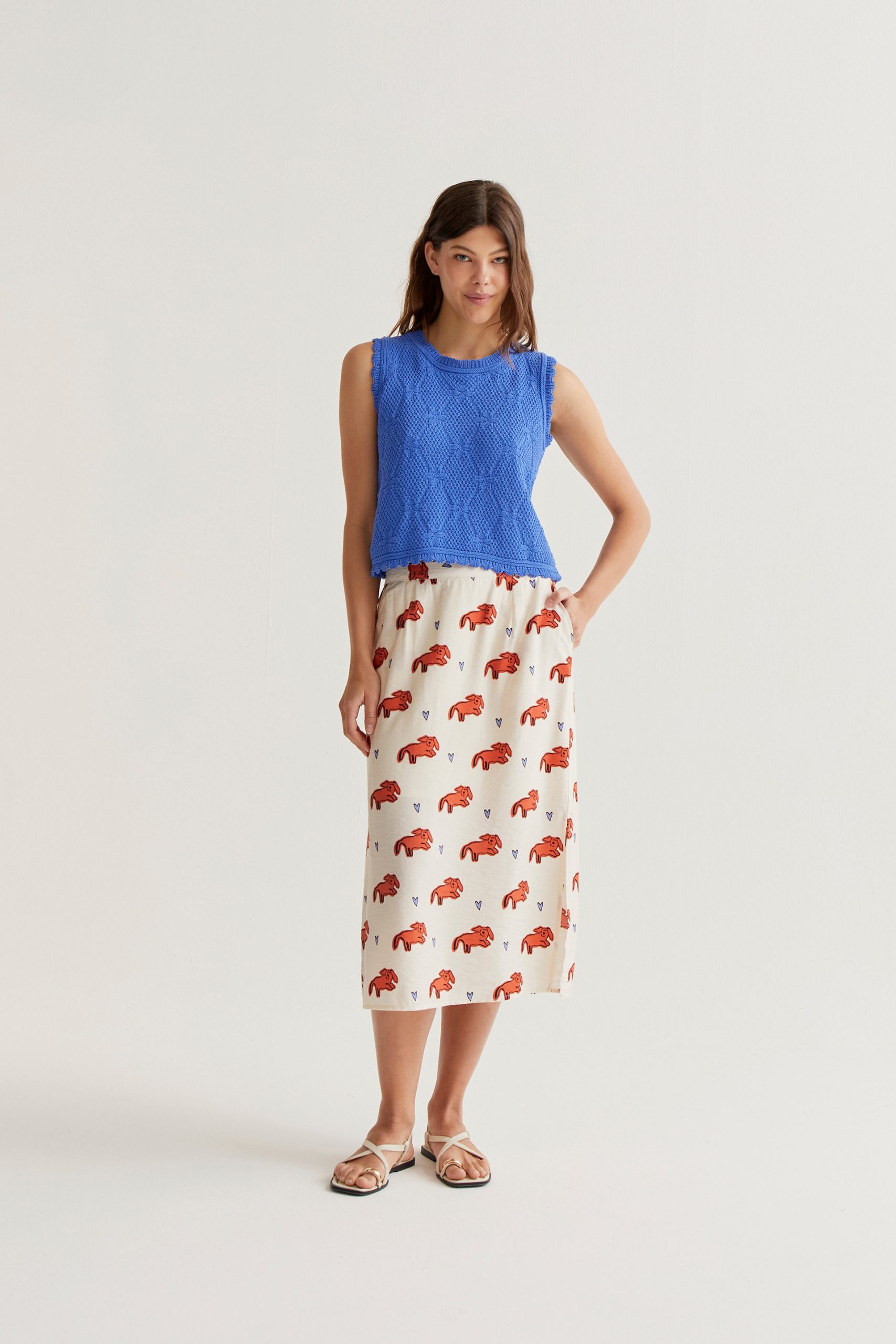 Su caída ligera aporta movimiento y comodidad, convirtiéndola en una opción ideal para el día a día. Es una falda perfecta para combinar con camisetas, tops o camisas lisas que permitan que el estampado destaque.