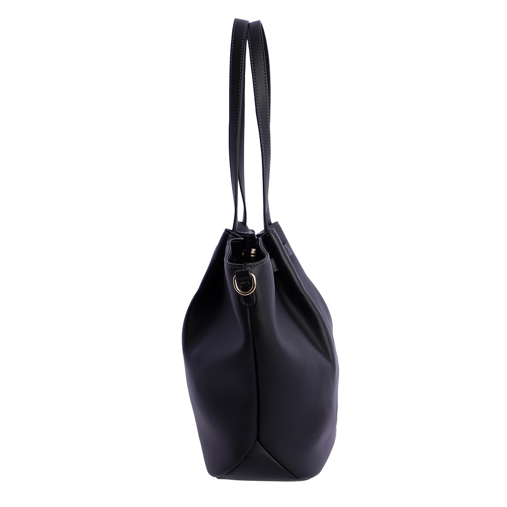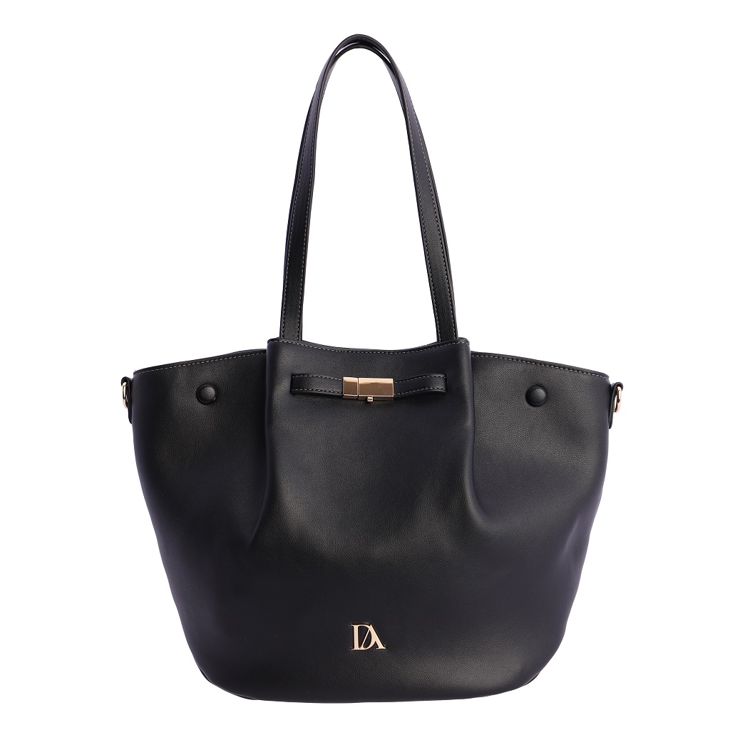 Cuenta con doble asa resistente para llevar cómodamente al hombro, y un cierre decorativo con detalle metálico en la parte superior que realza su diseño limpio y moderno. Su amplia capacidad interior permite organizar fácilmente todo lo necesario, convirtiéndolo en el complemento perfecto para ir al trabajo, salir de compras o completar tus outfits de ciudad.