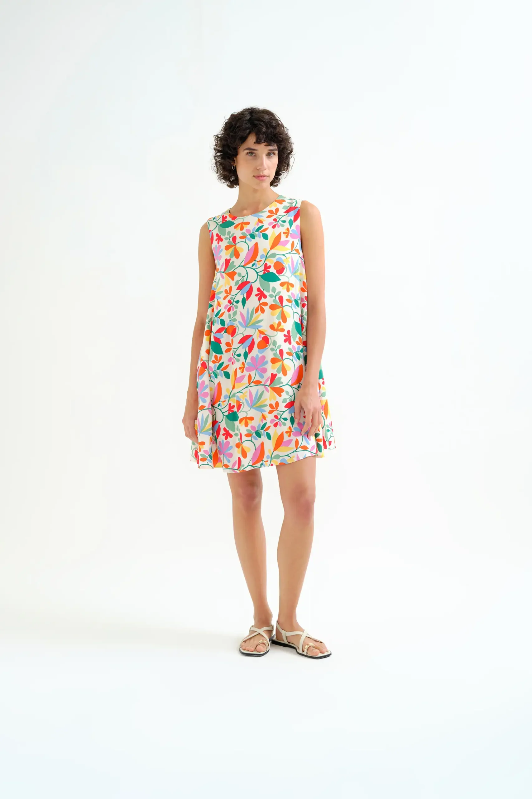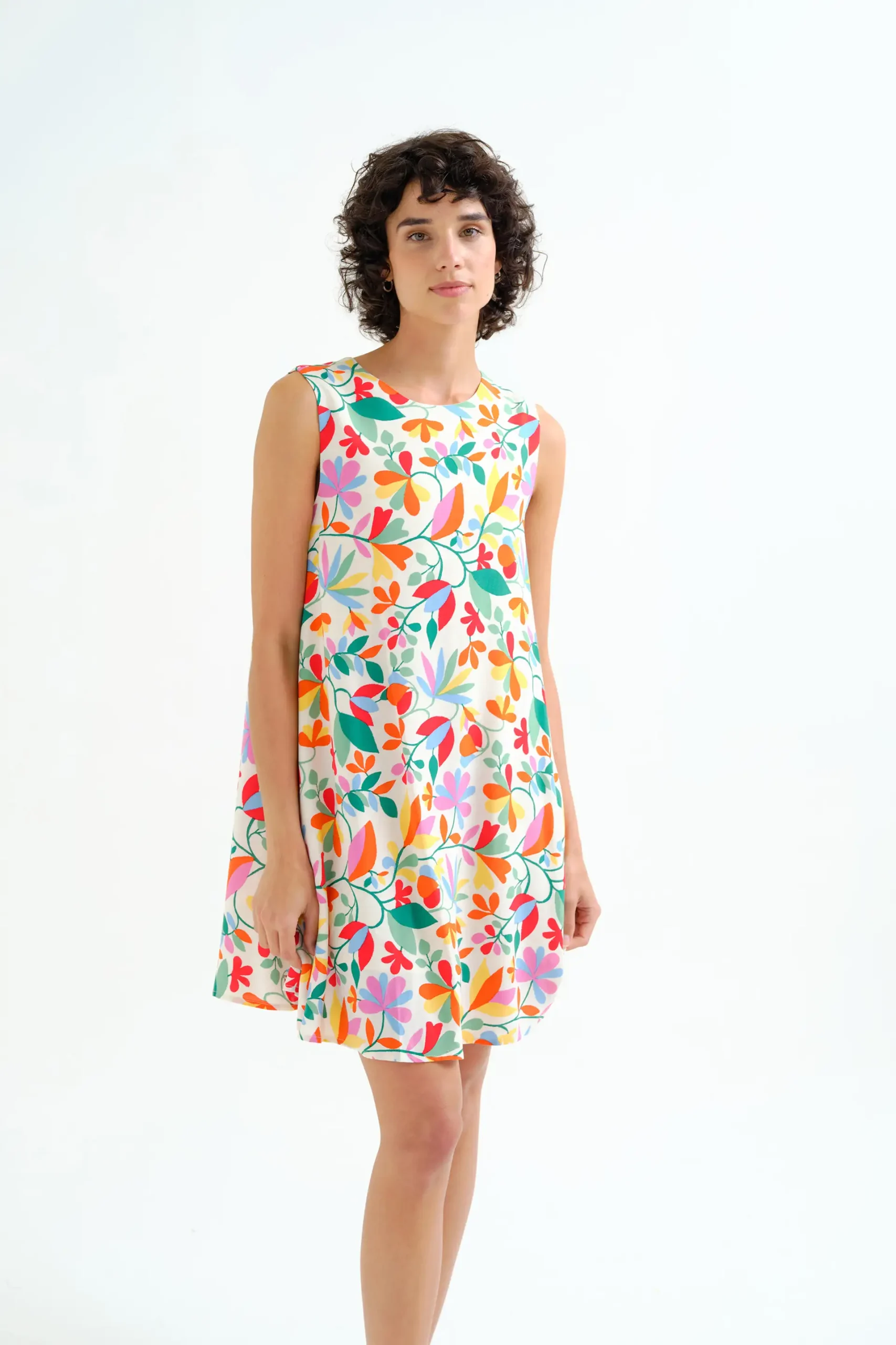 Este vestido corto para mujer con estampado floral destaca por su diseño alegre y colorido, perfecto para looks desenfadados en los días más cálidos.